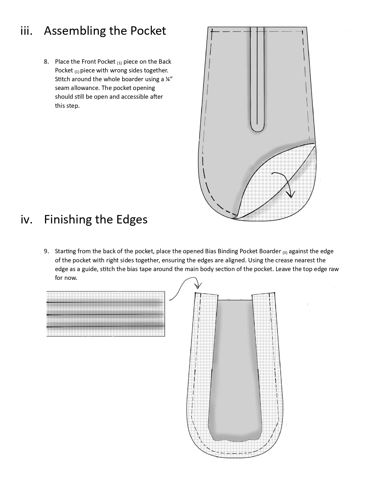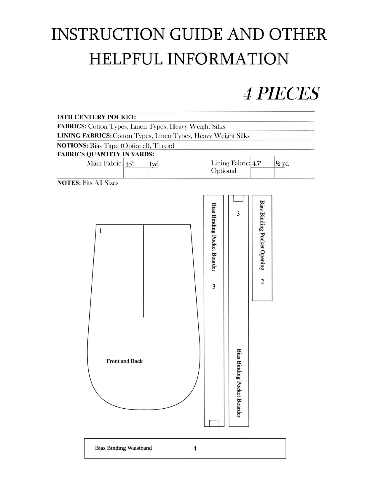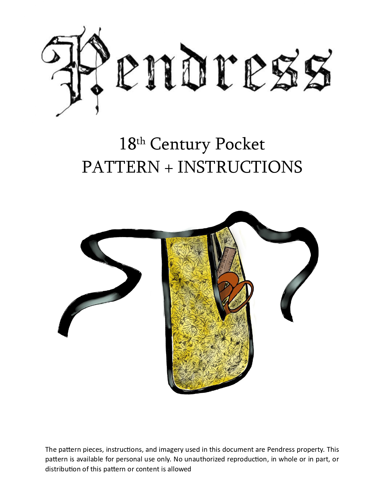• Size Guide: This pattern is drafted at a single, historically inspired scale and is designed to fit most adult bodies due to its fully adjustable tie‑on construction. Because 18th‑century pockets were worn independently from garments, no modern sizing is required. The pocket can be lengthened, widened, or shaped to your preference without affecting construction.