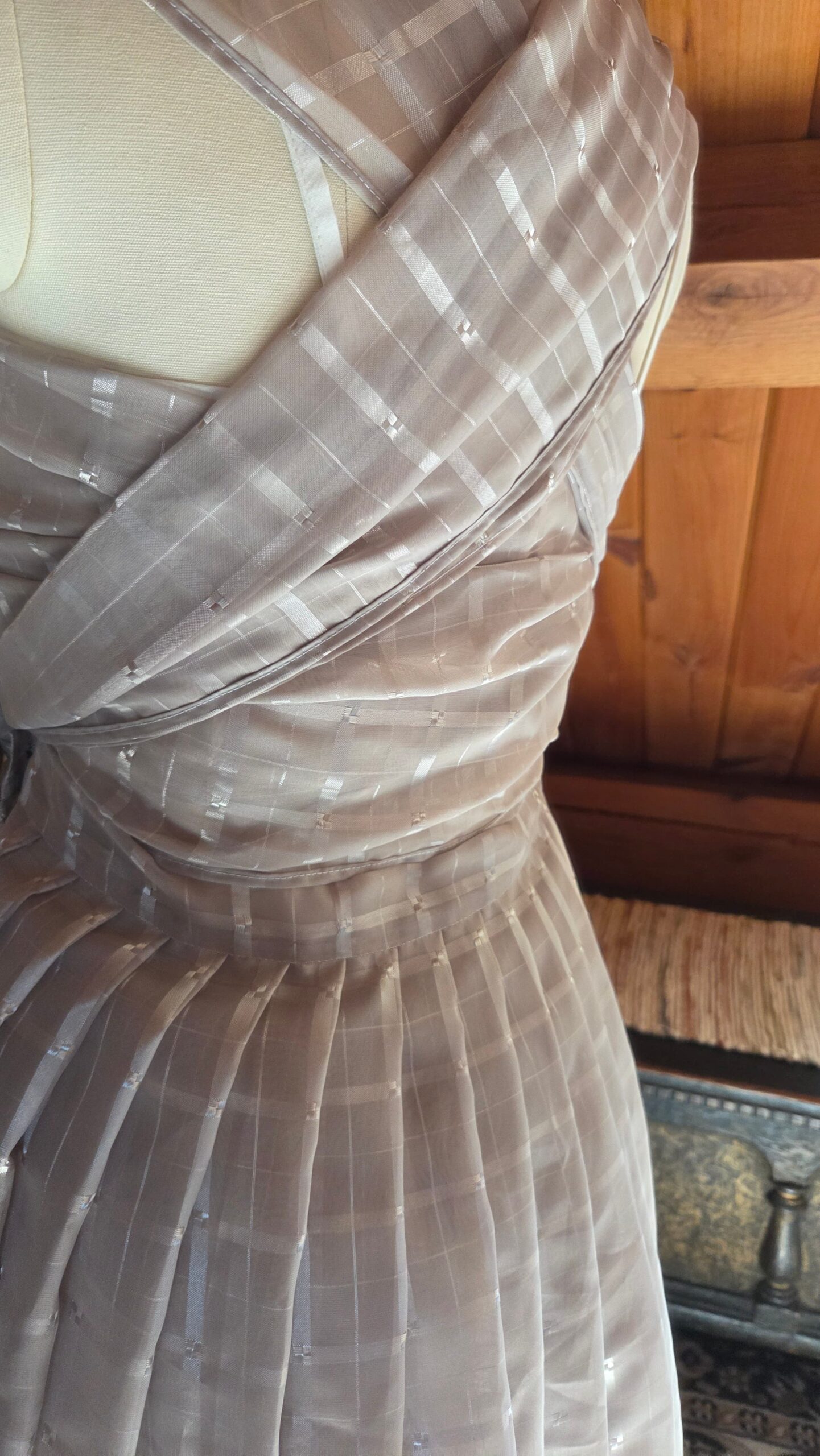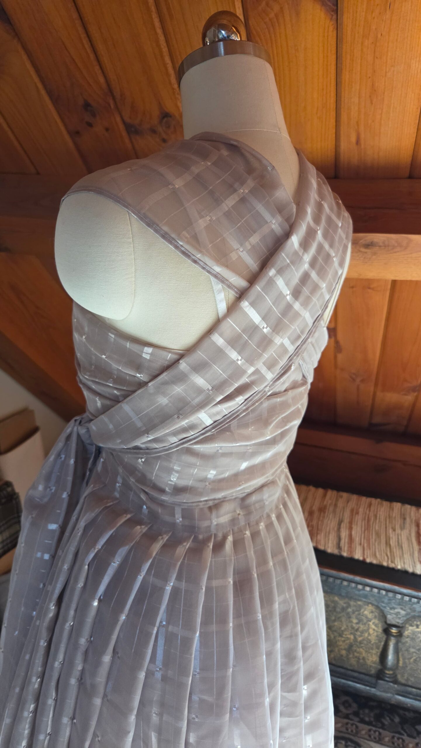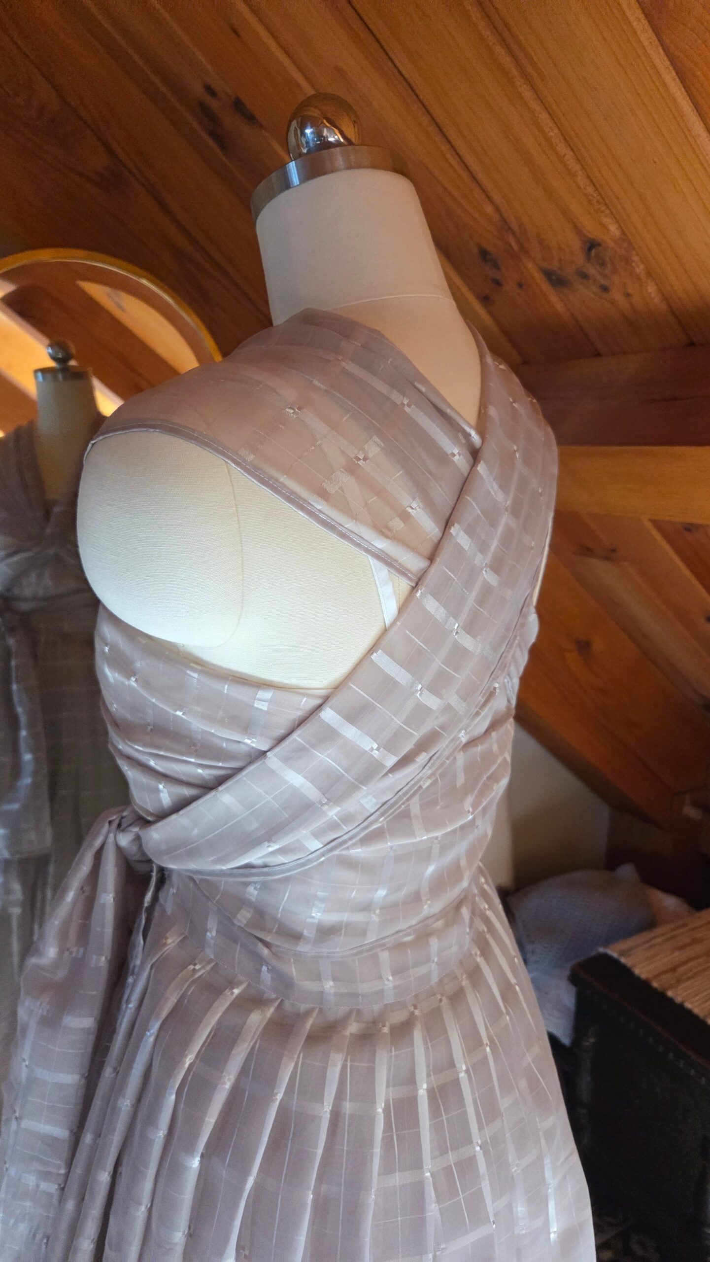 As I worked, it became a fun creative challenge—an exercise in problem‑solving, intuition, and letting the fabric guide the design. Every cut and pleat required a moment of consideration, a small negotiation between my original vision and the material’s natural tendencies.