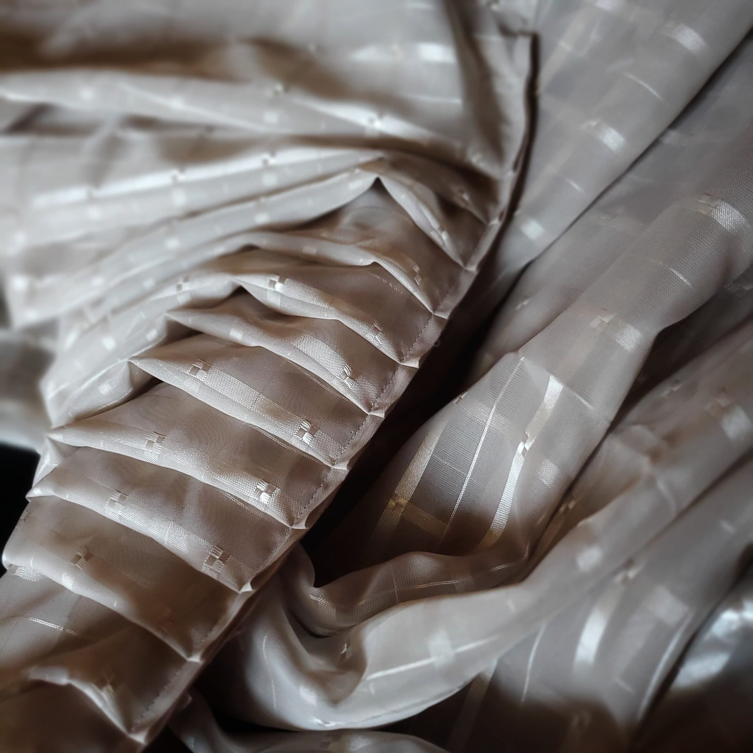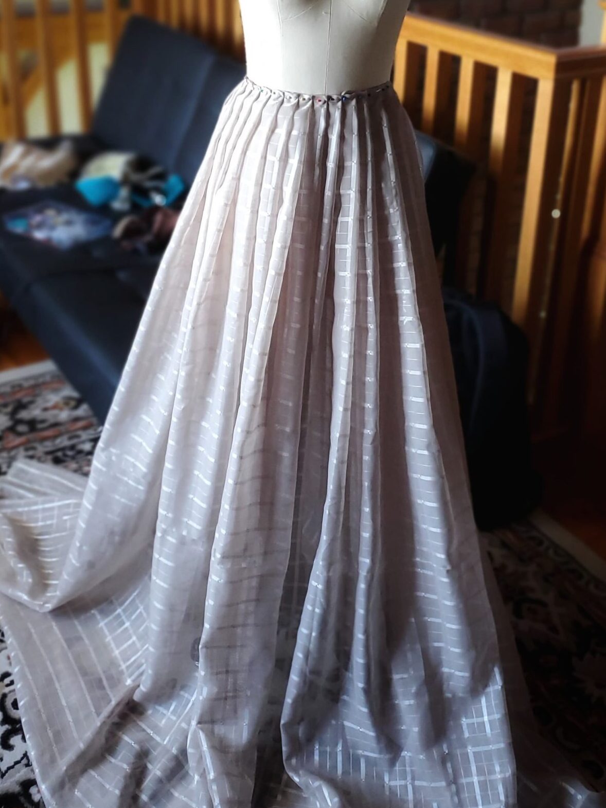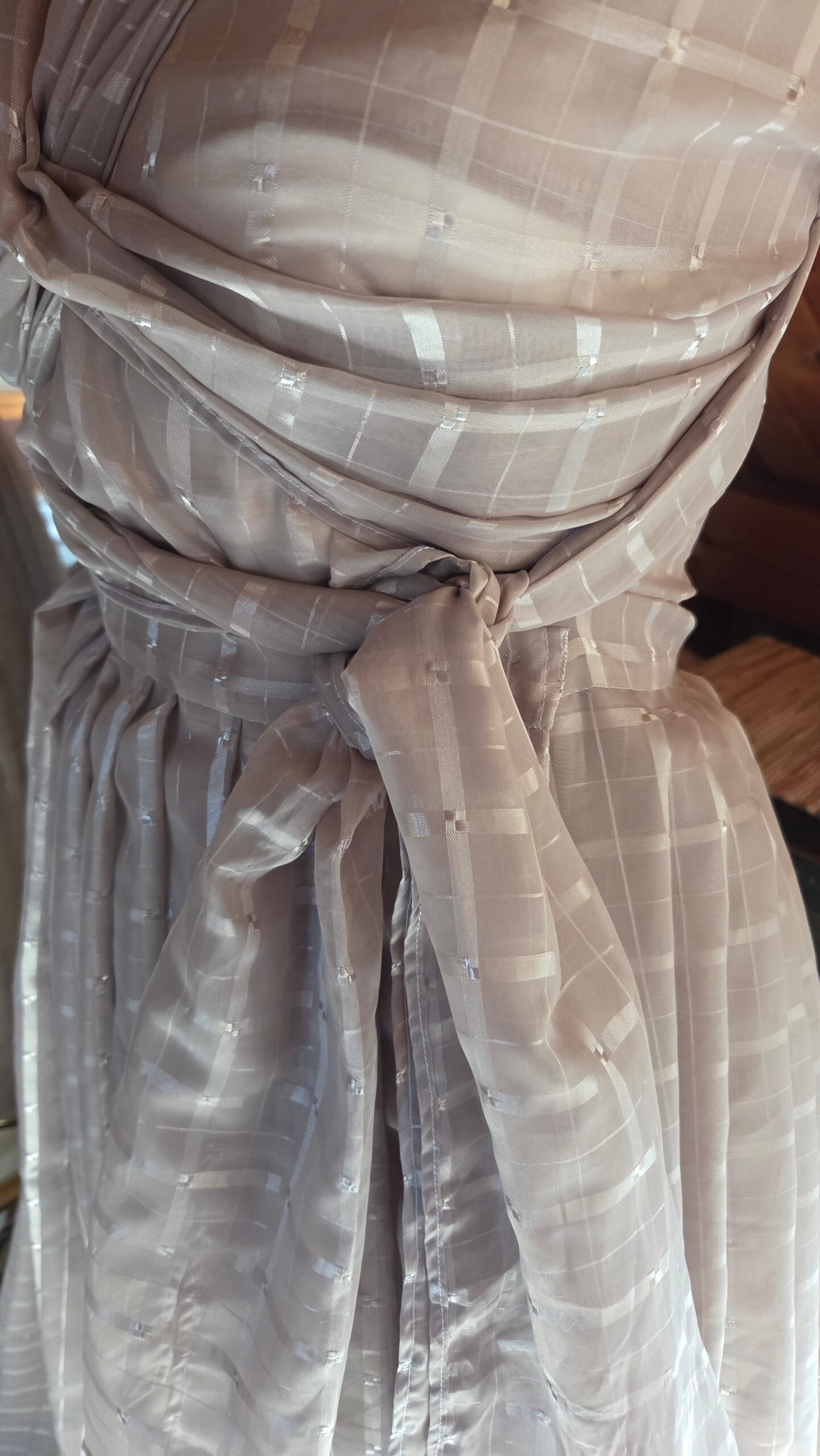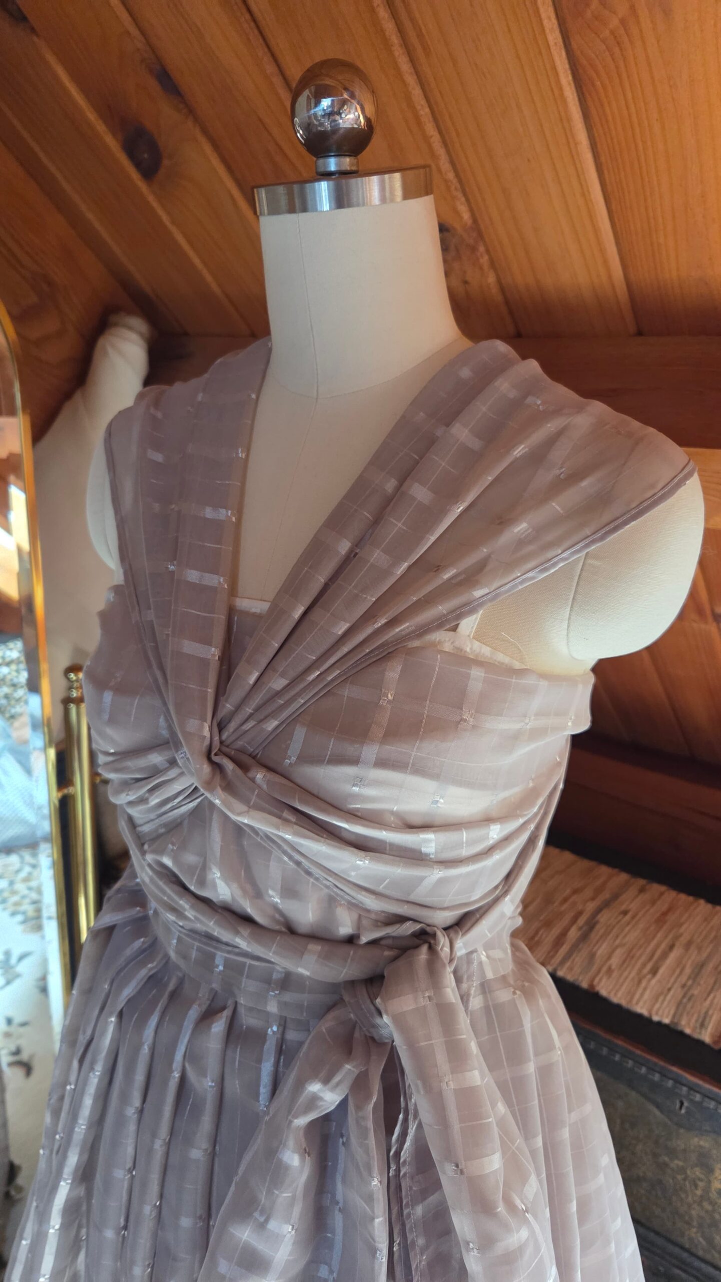 As I worked, it became a fun creative challenge—an exercise in problem‑solving, intuition, and letting the fabric guide the design. Every cut and pleat required a moment of consideration, a small negotiation between my original vision and the material’s natural tendencies.