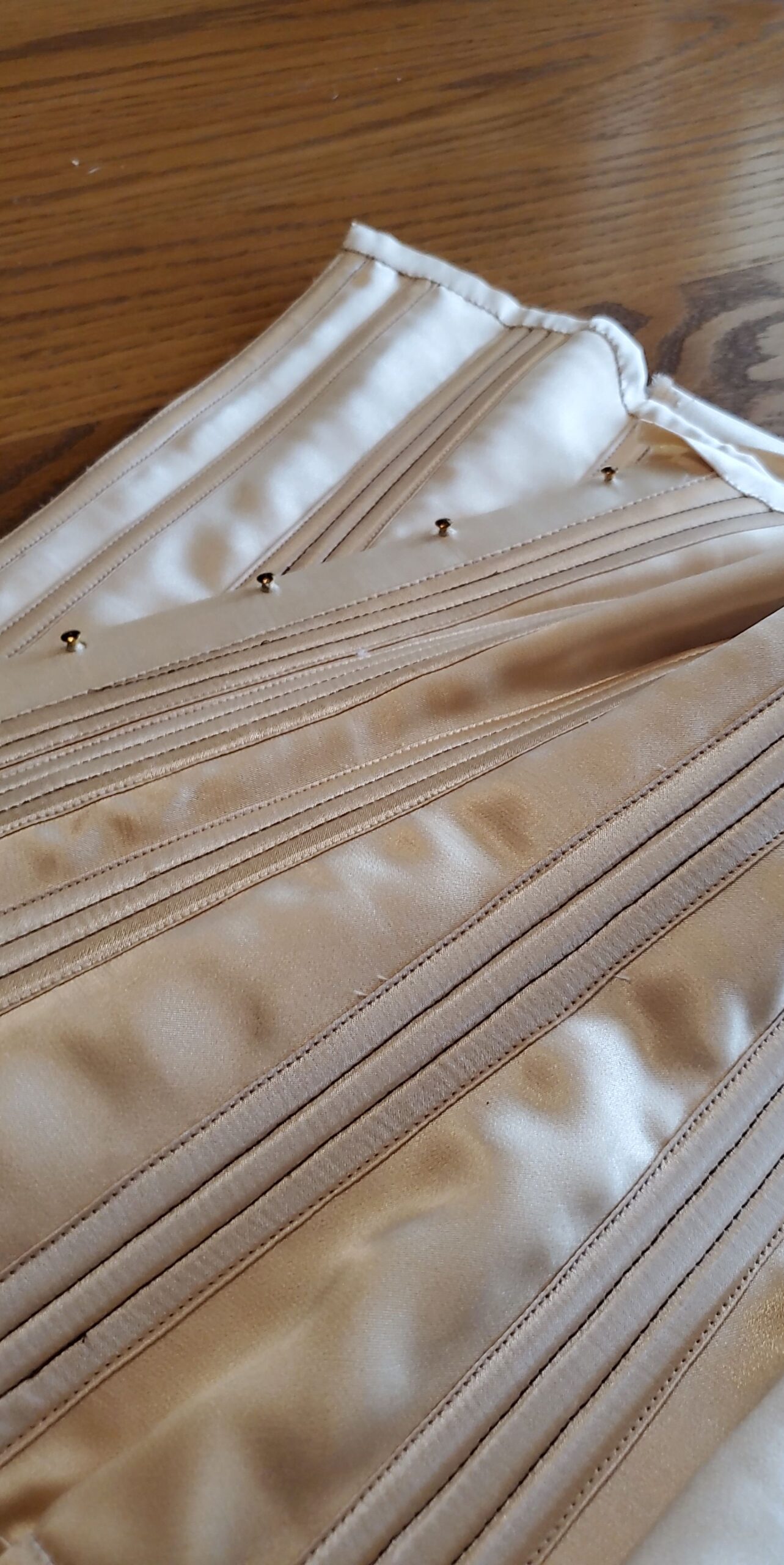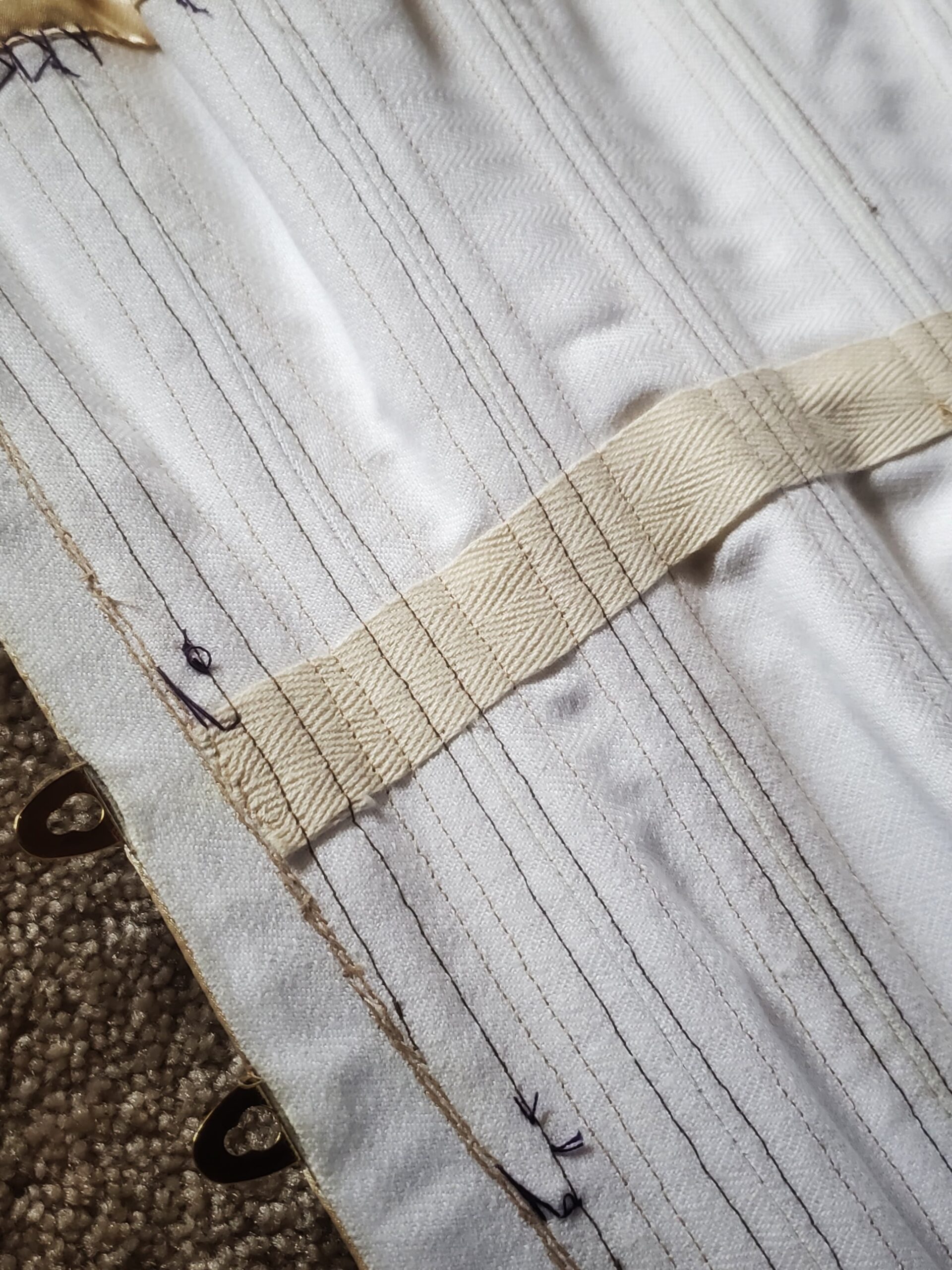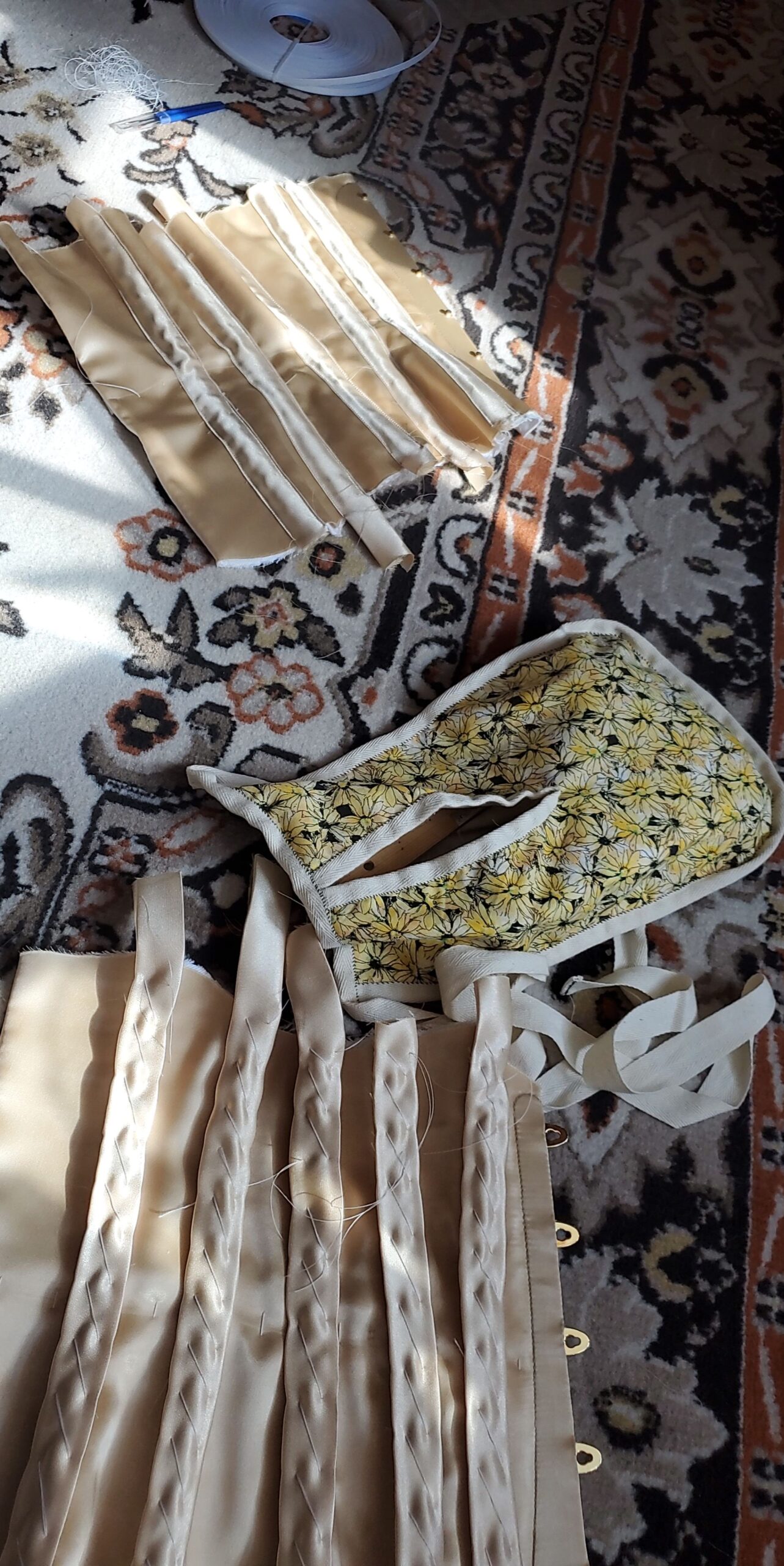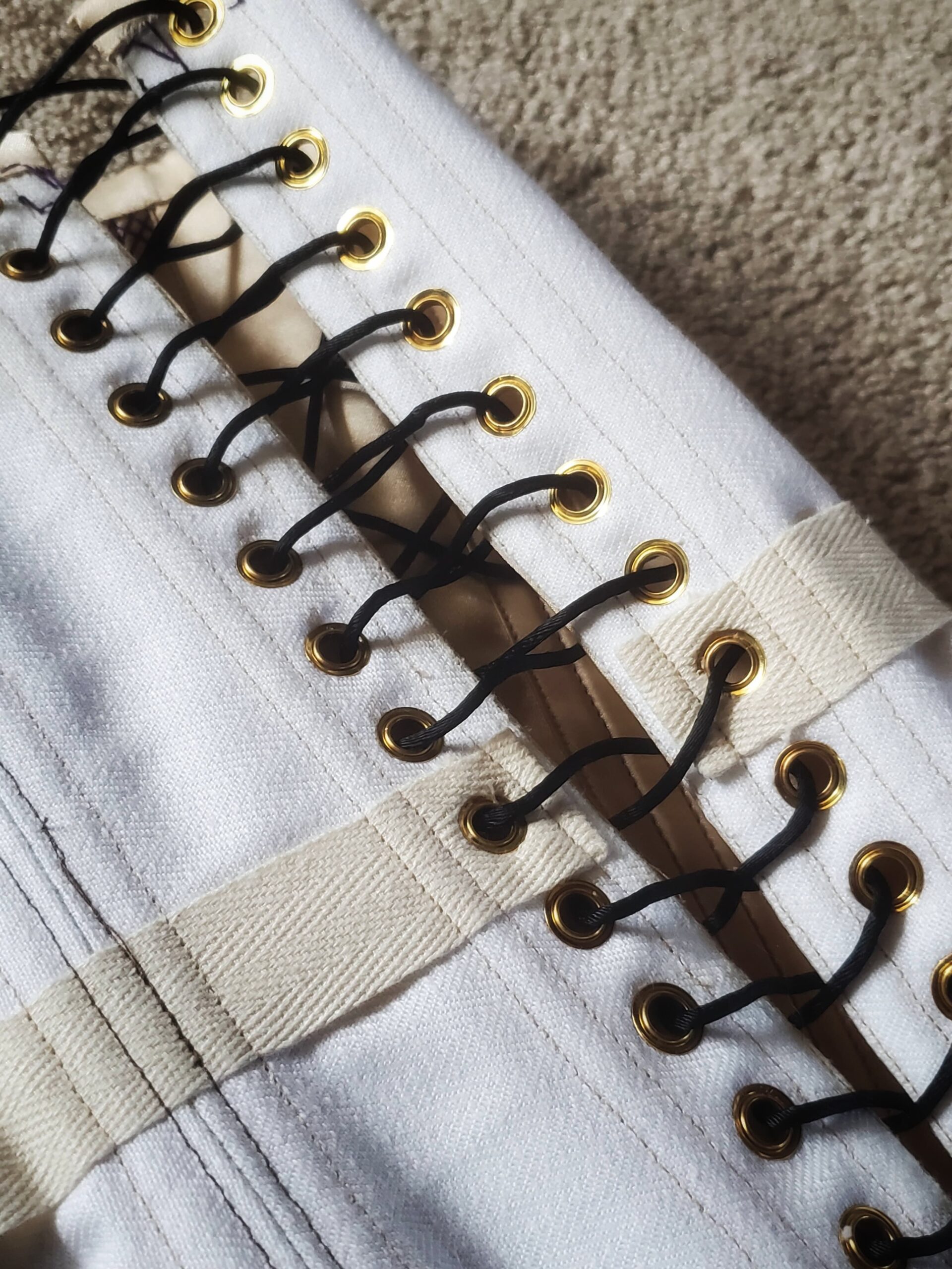 This 1890s corset was my third attempt at corsetry and my first serious step toward historical accuracy. I drafted the pattern to my own measurements using Stays and Corsets by Mandy Barrington, and I plan to use this piece as the foundation for many future garments inspired by this era. It’s constructed from silk and cotton coutil, reinforced with a 12‑inch metal spoon busk, plastic boning, metal grommets, traditional lacing, and finished with hand‑worked embroidery.