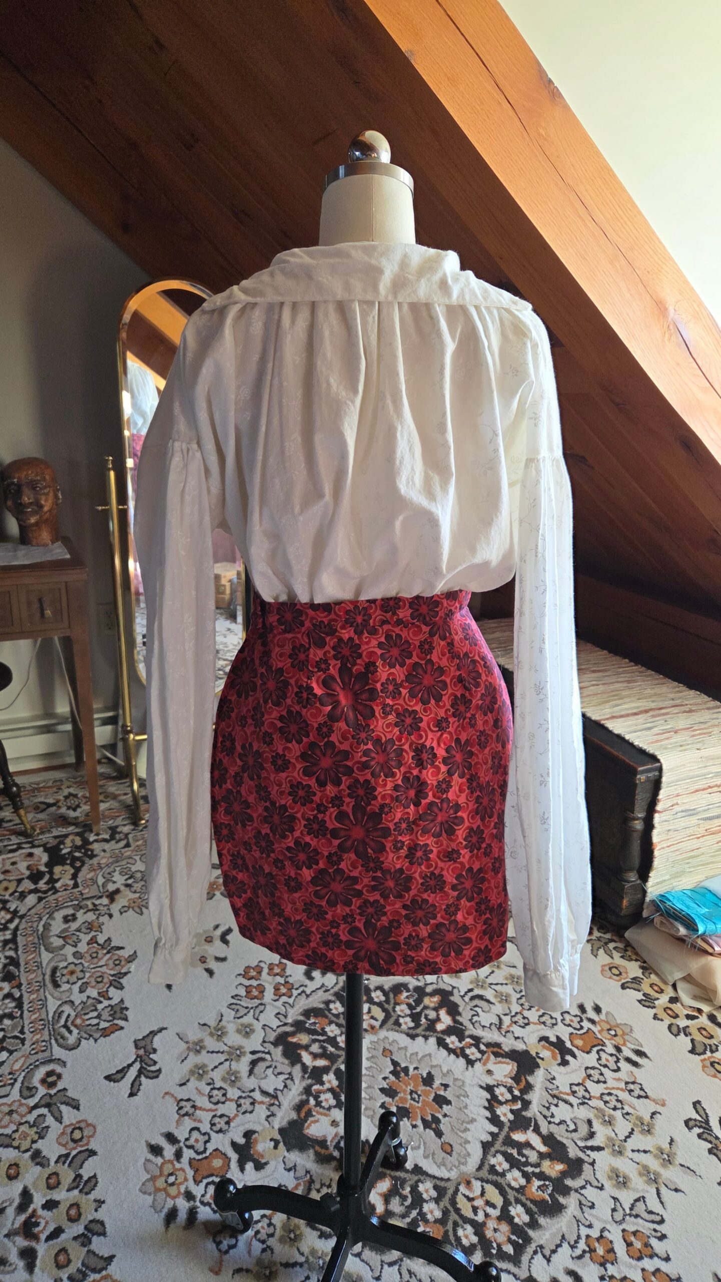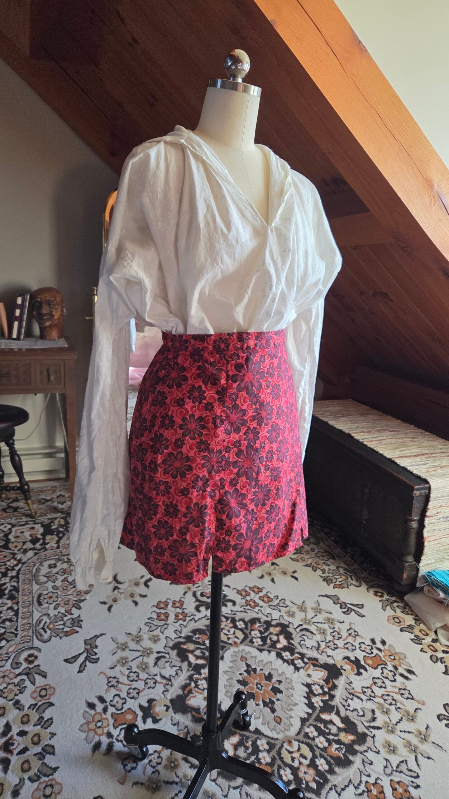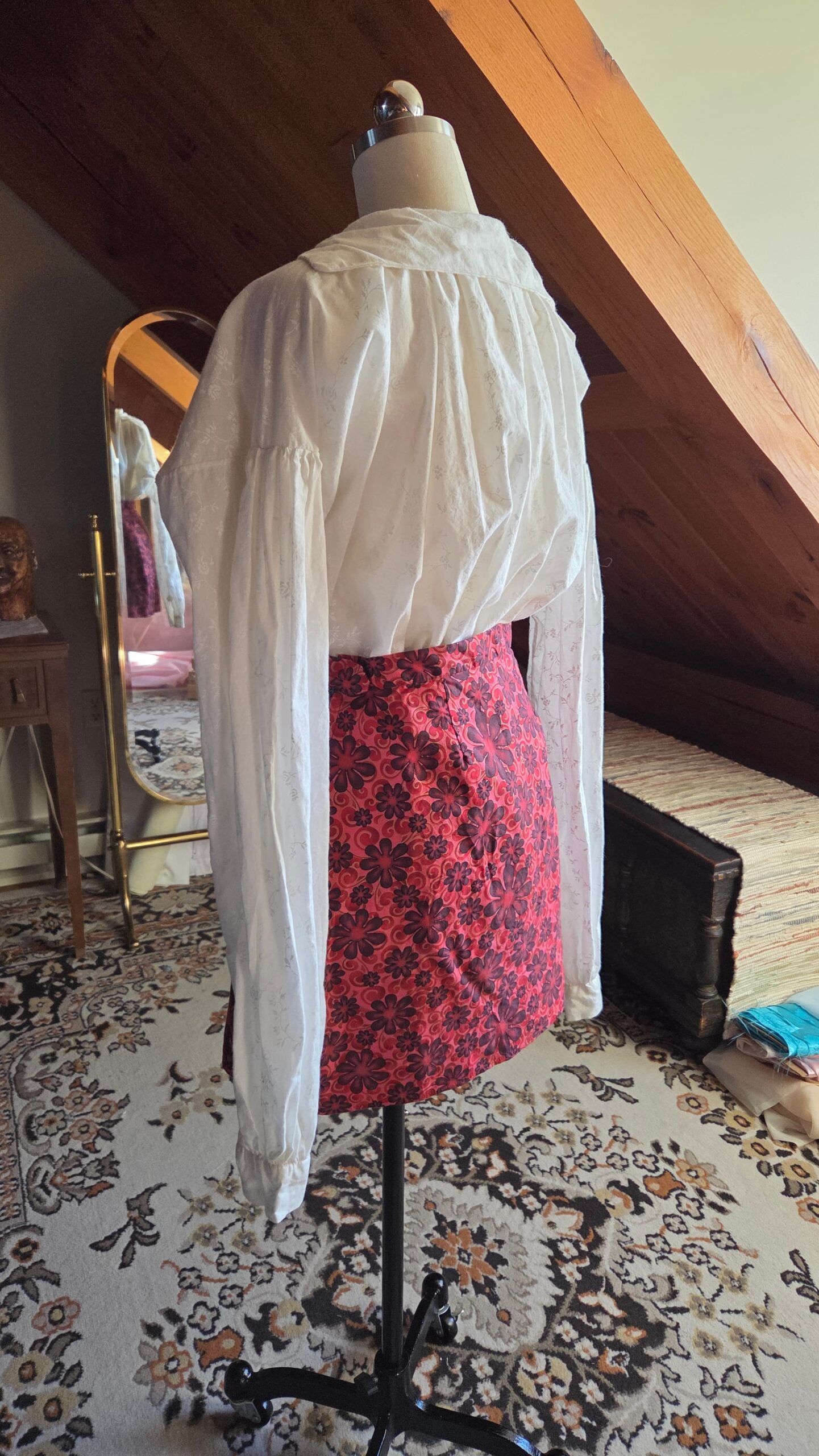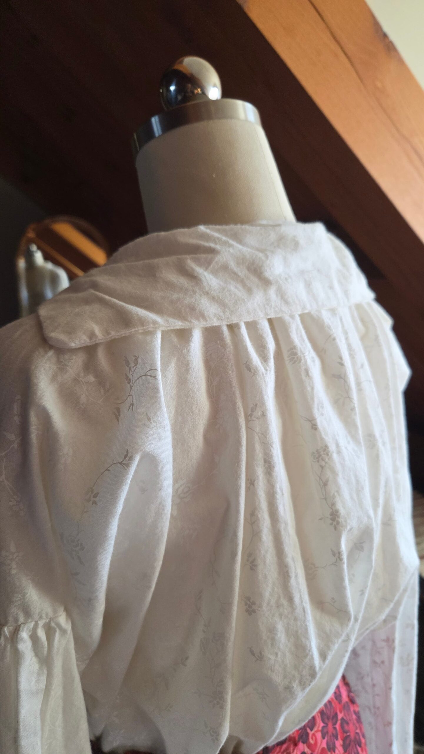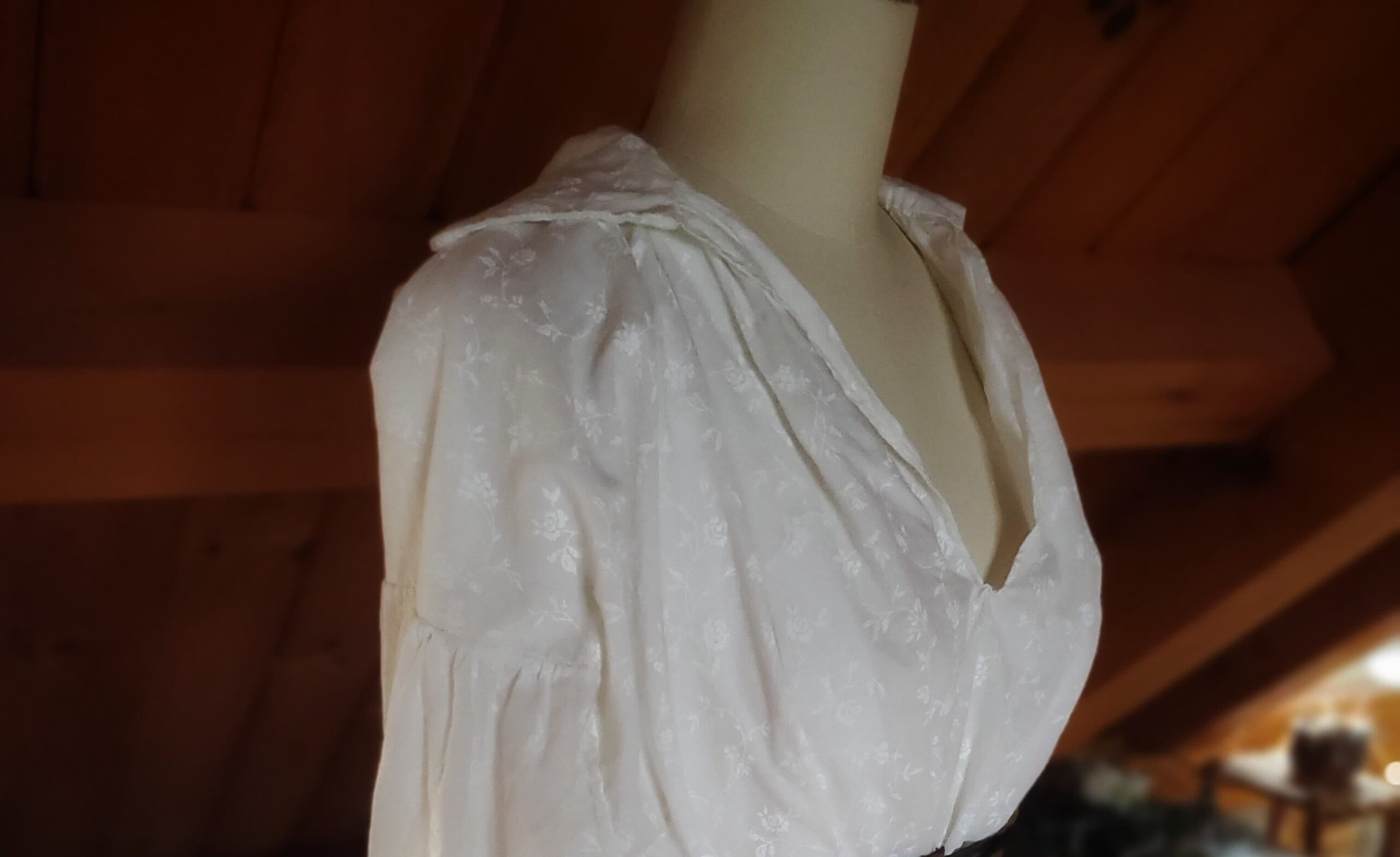 The basic building blocks of this kind of shirt are wonderfully simple—constructed entirely from squares and rectangles—so I took the opportunity to hand‑stitch the entire garment, just as it would have been made in the past. Working through this project taught me a variety of hand‑sewing techniques and deepened my understanding of historical garment construction. The shirt is made from cotton and finished with buttons at the sleeve cuffs.