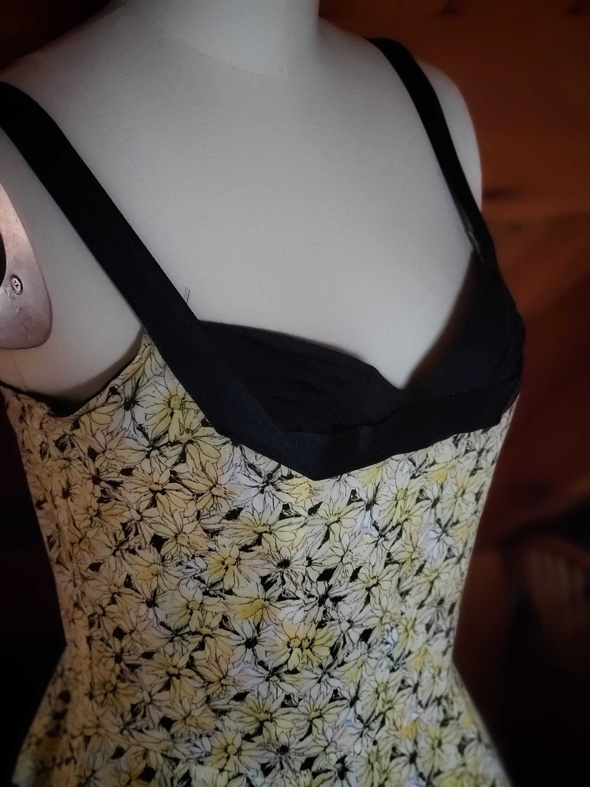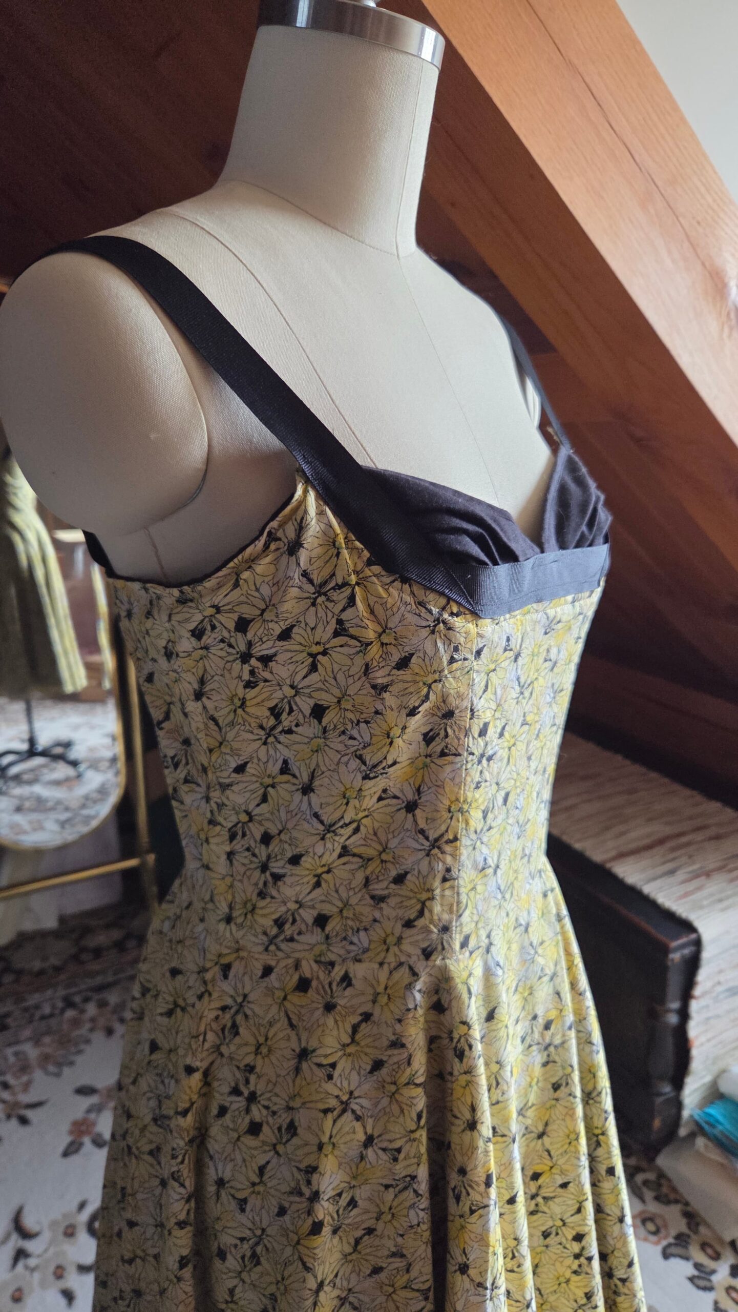 This 50s-inspired dress was one of the first pieces that I made when I started sewing. I learned so many fundamental sewing skills while completing this project, such as how to read sewing patterns, how to make alterations to patterns, techniques for proper garment construction, and how to finish the raw seams, just to name a few. Made with cotton, zipper, and ribbon, this is a dress that will remain in my wardrobe for many years to come.